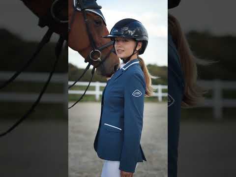 Stretchy and breathable women’s competition jacket featuring Equiline micro laser panels for enhanced ventilation. The back is finished with two vents. The jacket is unlined, making it easy to care for and light and airy to wear.