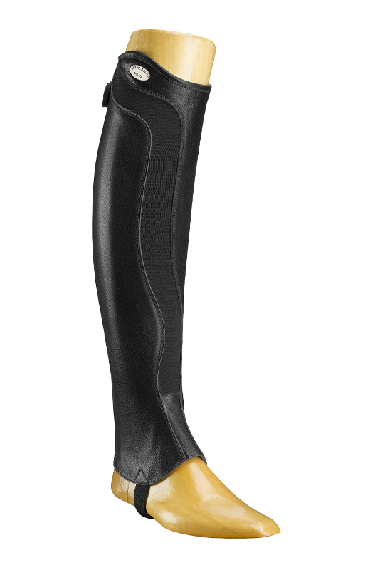 Mini chaps of buffalo leather with elastic on both the front and the back and with an extra sturdy zipper. These comfortable and sturdy chaps are ideal for training in combination with the K Comfy shoes.