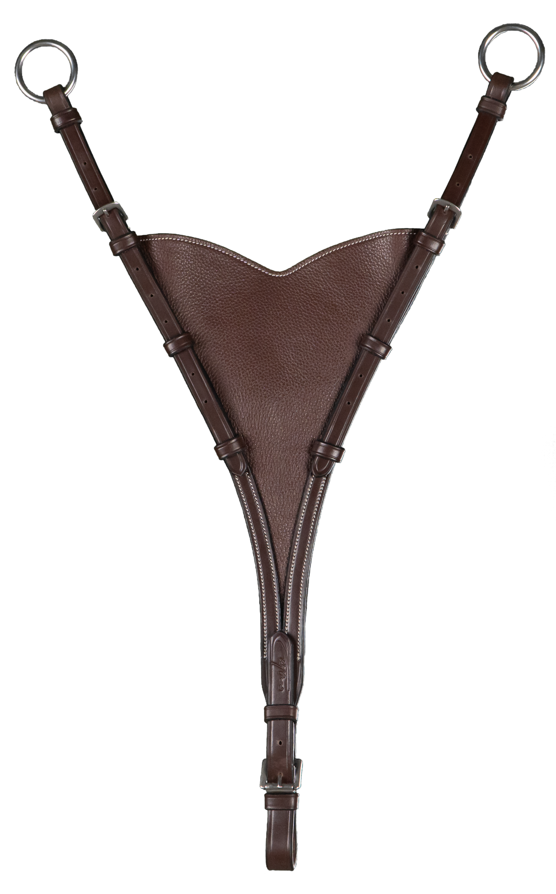 Soft BIB martingale attachment with light colored stitching from the top brand Dy'on. The martingale attachment is fitted with silver-coloured stainless steel buckles. The roller buckle allows the attachment to be easily attached to a martingale or breastplate.