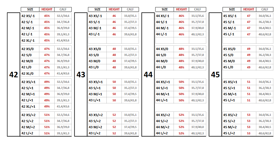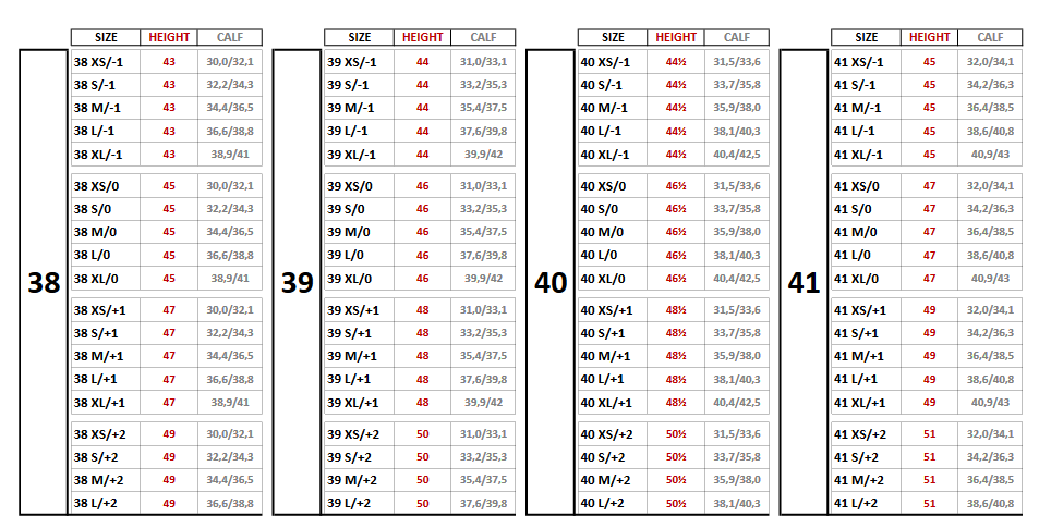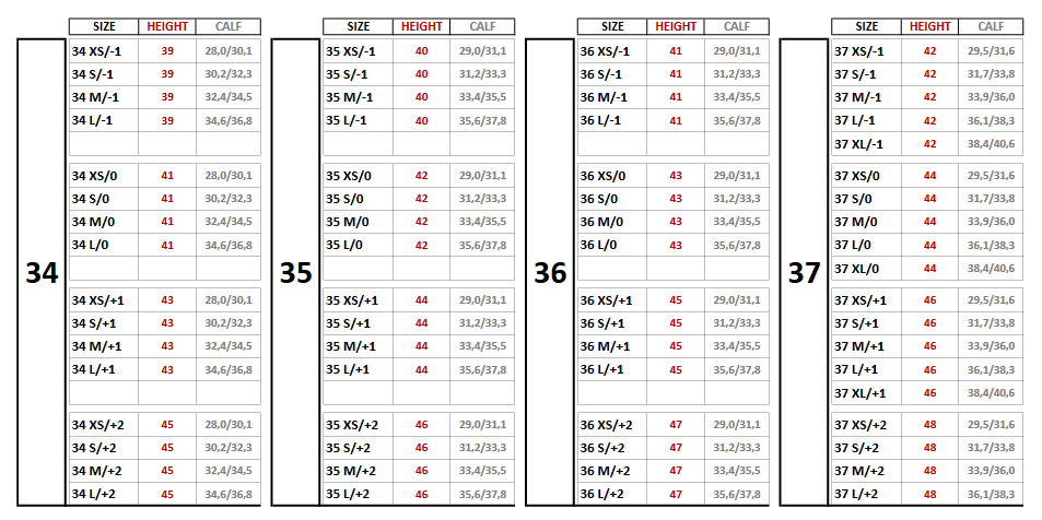 - Foot size: See order menu