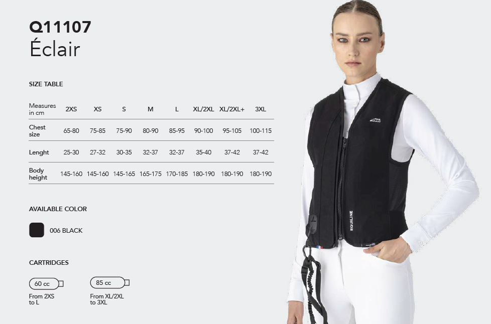 No compromises on safety. Equiline has joined forces with Allshot for one innovative and versatile Airbag vest. This unisex airbag vest is practical to use and easy to attach to the saddle. The cartridge is also easy to replace.