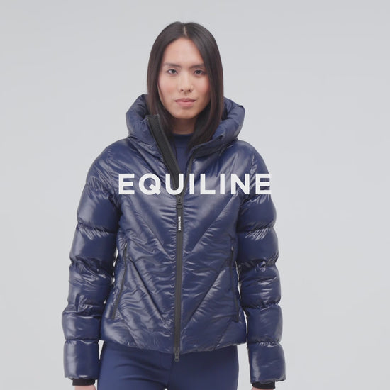 Practical details such as a two-way zipper, two secure zip pockets, and a magnetic button to keep the hood in place make this jacket both functional and stylish. The iconic Equiline logo on the hood adds the finishing touch.