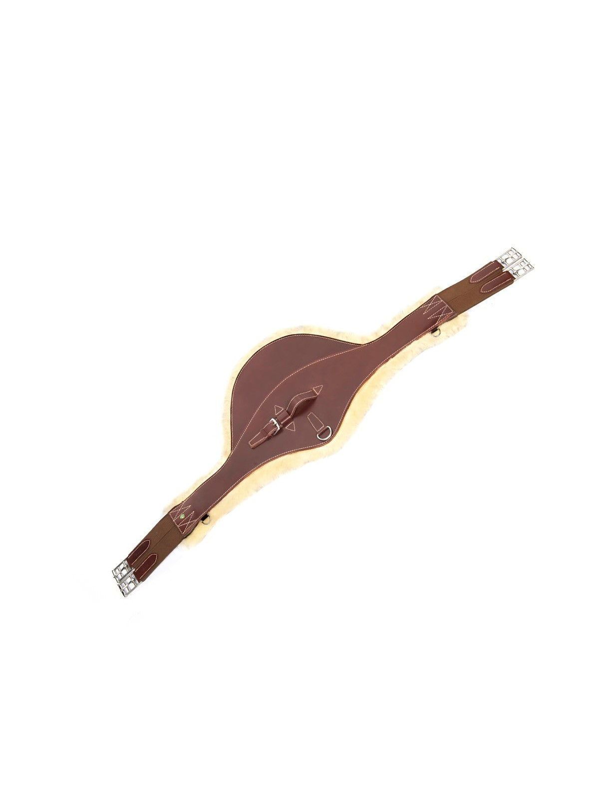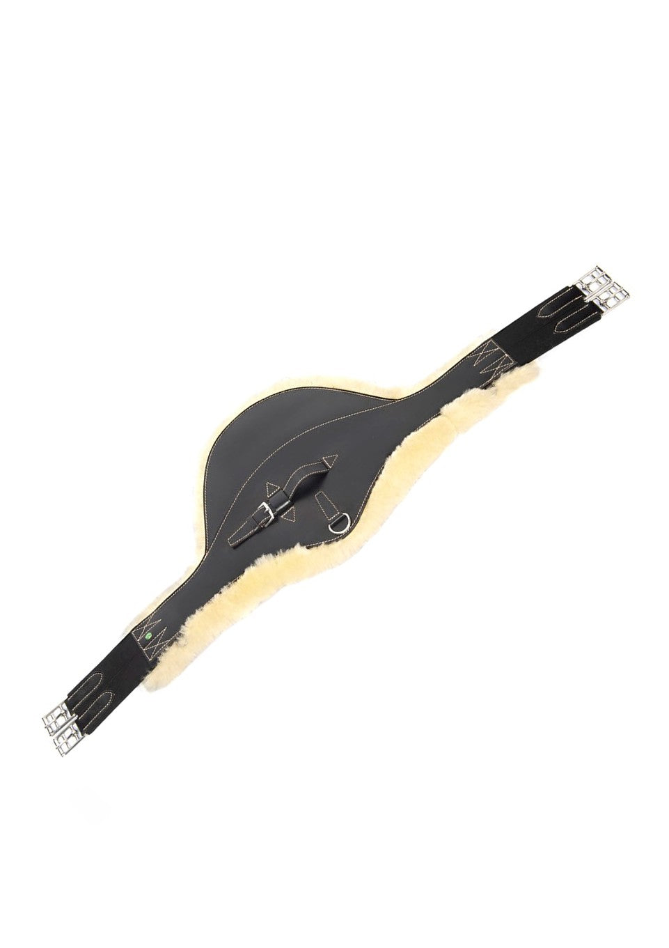 Leather girth with belly flap, finished with decorative stitching and a removable “Safe the Sheep” lining attached with Velcro, making it easy to remove and wash.